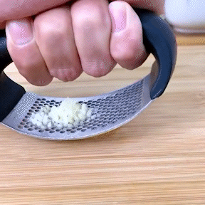 El aplastador de ajo tiene un diseño ergonómico. Coloque el ajo o el jengibre en la tabla de cortar, presione y agite bien. Puedes aplastar fácilmente los dientes de ajo en unos segundos.