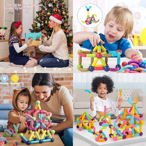 Los Bloques Magnéticos son el juguete perfecto para estimular la imaginación y el desarrollo cognitivo de los niños a partir de 2 años. varias piezas en diferentes colores y formas, tus pequeños podrán construir estructuras increíbles mientras aprenden sobre magnetismo y geometría.