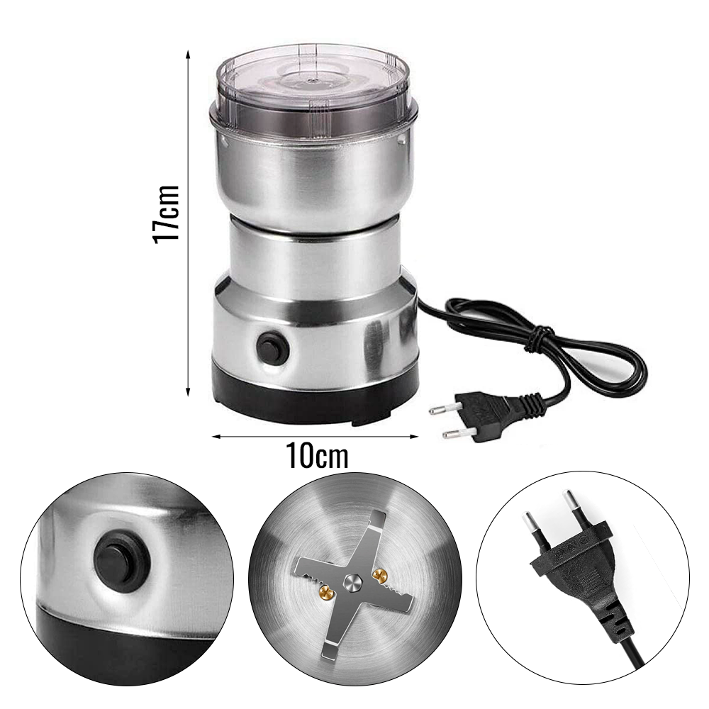 El Molinillo Eléctrico de acero inoxidable para el hogar, molinillo de granos y cereales, herramienta para semillas, es una buena opción para personas que buscan un molinillo eléctrico potente y fácil de usar. El molinillo está hecho de acero inoxidable, lo que lo hace duradero y fácil de limpiar. El molinillo tiene una potencia de 100 W, lo que le permite moler rápidamente una variedad de ingredientes.