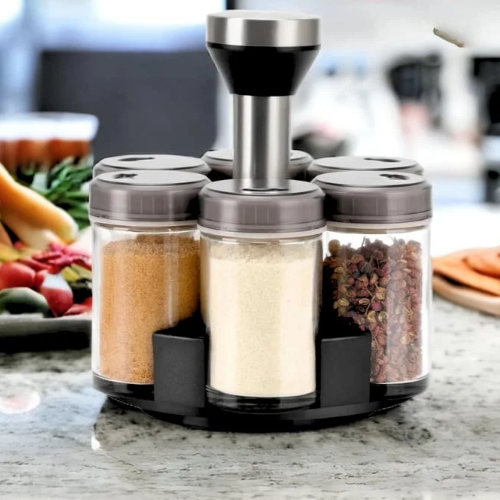 Presentamos nuestro Especiero Giratorio de Alta Calidad: la solución perfecta para organizar y mantener frescas tus especias.
