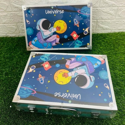 El robusto estuche de aluminio de doble pared asegura un almacenamiento seguro y organizado. Su diseño plegable y asas metálicas facilitan el transporte, permitiéndote llevar tu arte a donde desees.