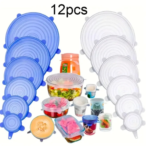 Mantén tus alimentos frescos y organizados con nuestro set de tapas de silicona reutilizables. Diseñadas para ajustarse perfectamente a cualquier recipiente, estas tapas son la solución práctica y ecológica que necesitas en tu cocina. Su material de silicona flexible y duradero garantiza un sellado hermético que preserva la frescura de tus alimentos por más tiempo, evitando derrames y contaminaciones.