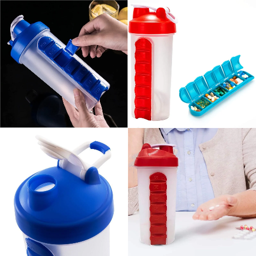 Botella Integrada: La botella de 21.1 onzas líquidas permite beber agua fácilmente mientras tomas tus pastillas, y también es ideal para leche o jugo.